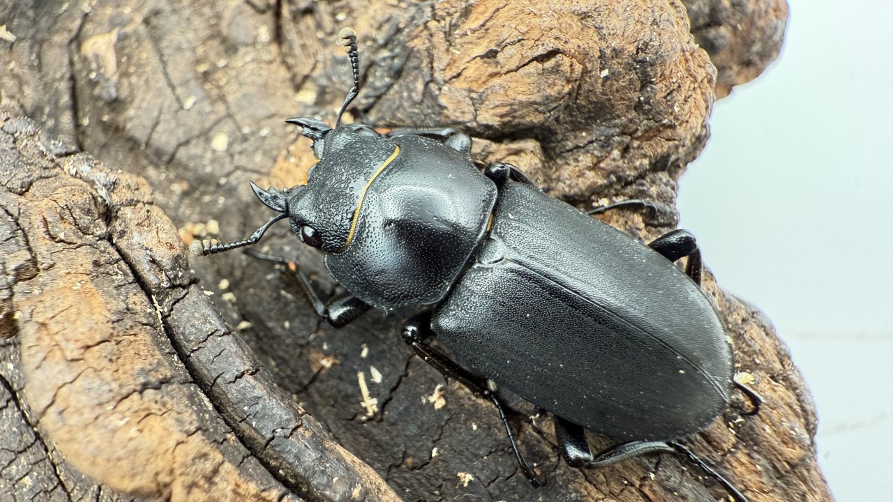 前胸背板はオオクワと異なり、後方が斜めに切れ込むのでここが見分けるポイント。