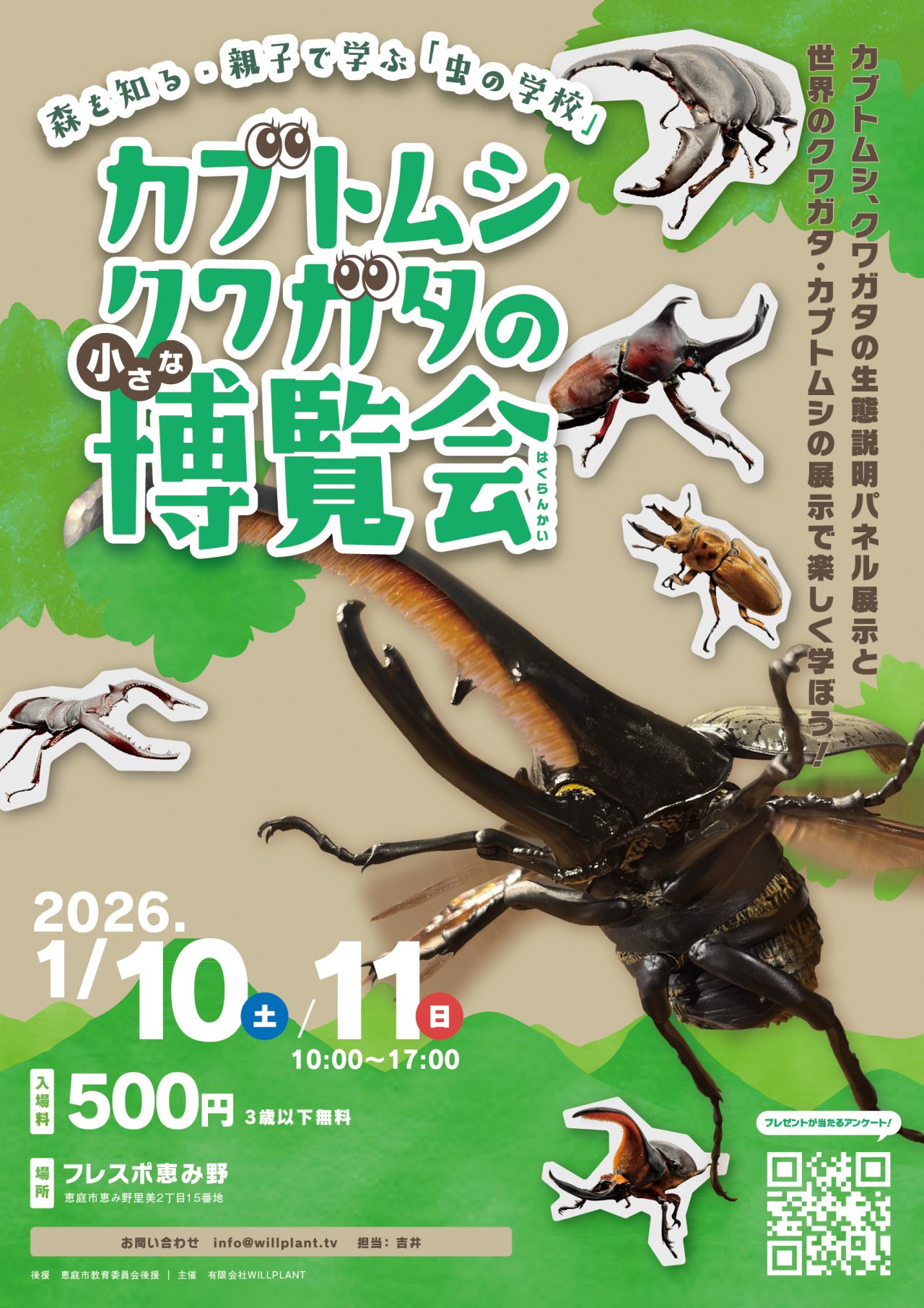 カブトムシ・クワガタの小さな博覧会!in「フレスポ恵み野」26年1月10日(土)、11日(日)