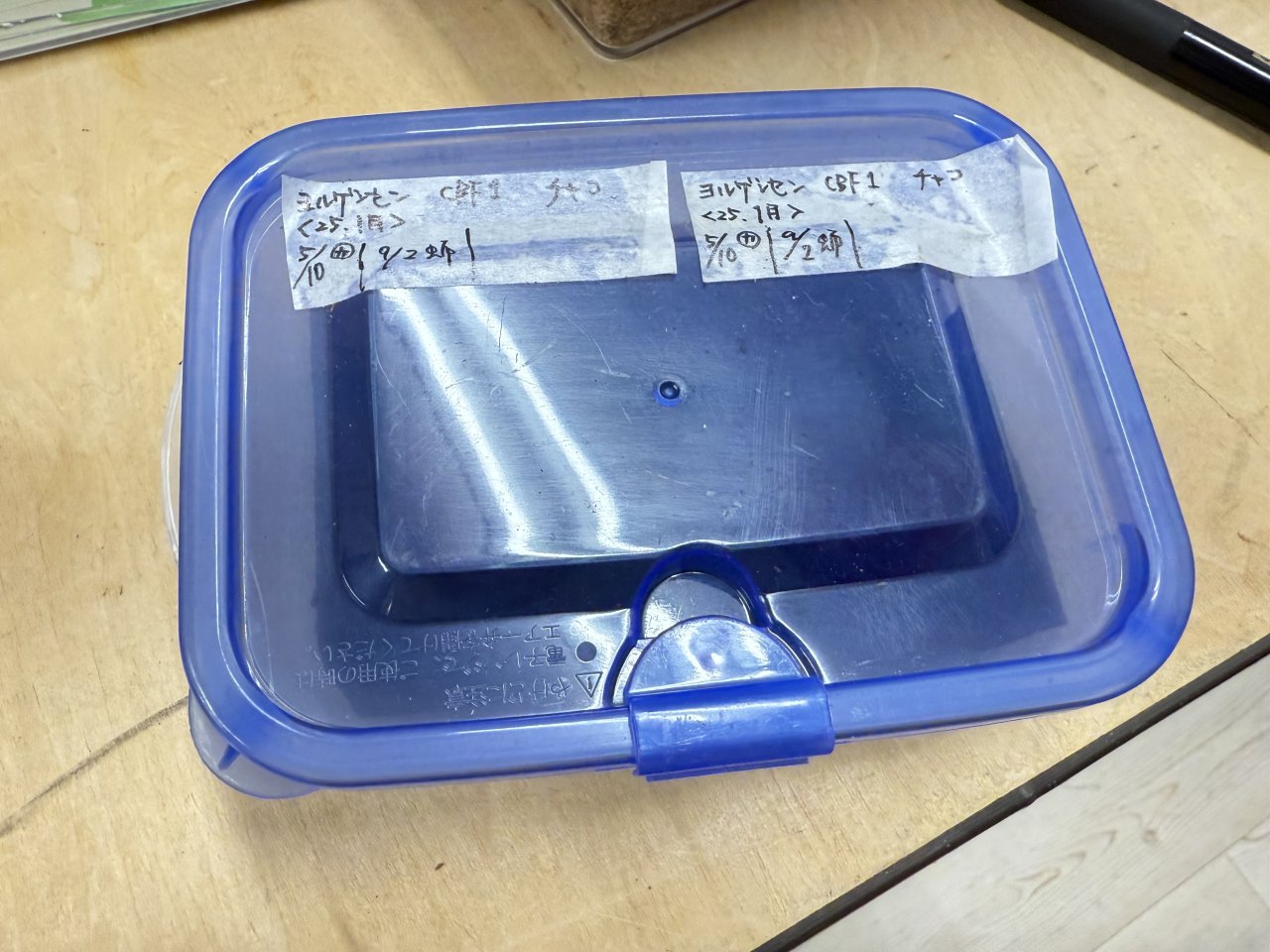 硬詰めはせずに、全体的にふんわりさせます。ヒナカブトの産卵セットは硬詰めはしないほうが良さそうです。