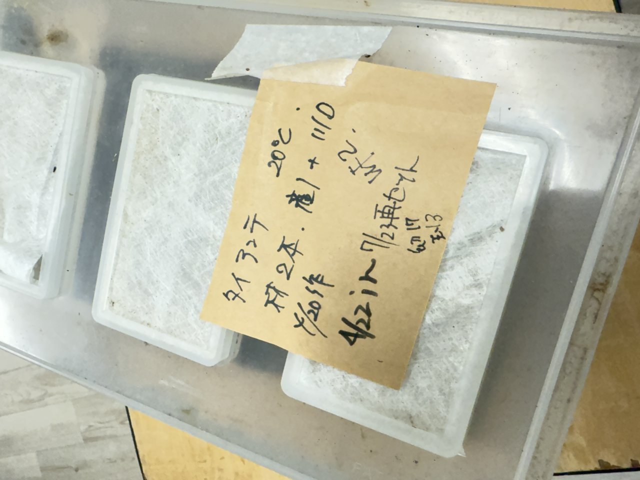 幼虫も低温飼育がマスト。1年中18〜20度程度が理想の飼育温度と思われます。