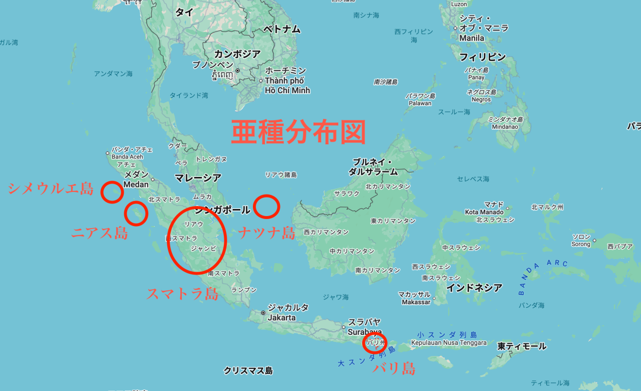 日本では、スマトラ、ボルネオ産地のものが流通していますが、これは基亜種。
