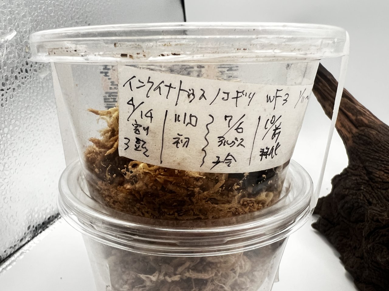 産卵材にもマットにも産卵するが、材のほうが多いと言われています。産卵木はクヌギ、コナラどちらでもOK。