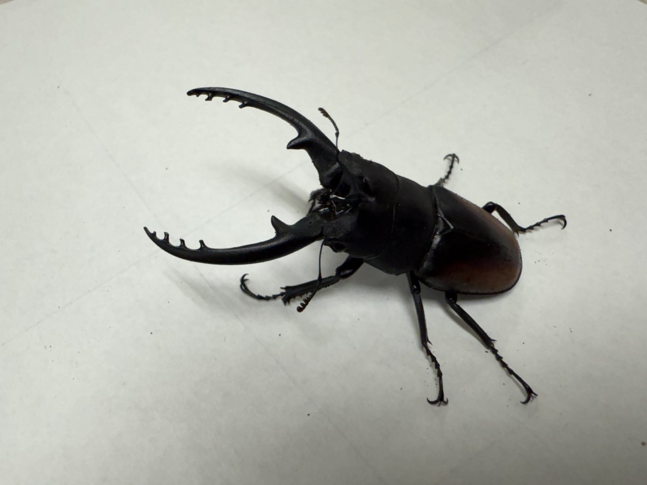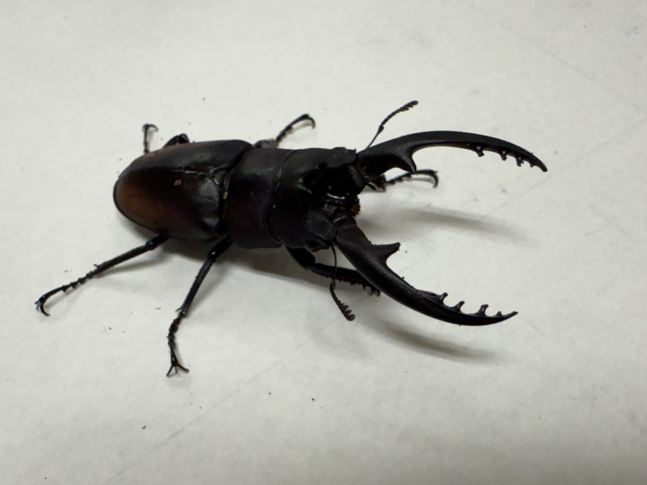 レニノコギリは少し顎が湾曲しています。色は黒です。頭のオニの様な突起もレニのほうが大きいですね。
