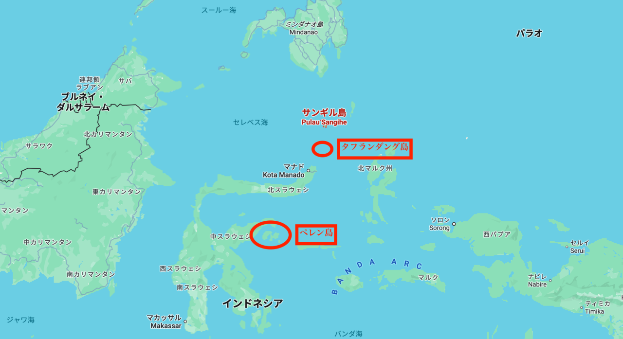 ※セレベス島と表記されることがありますが、これは植民地時代の呼び方で、インドネシアの独立後は一般的にスラウェシと呼ばれています。
