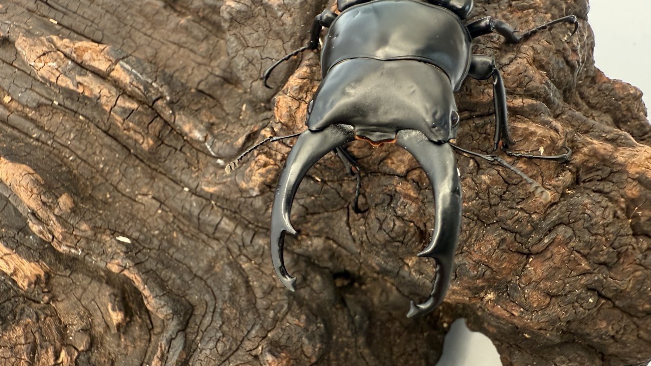 大あごは尖り、約1/3ほどの位置に小さな三角形の内歯が見られます。ここは他ではあまり見られない特徴ですよね。さらに根元にも大きく反り上がった三角形の内歯があり、メスらしい力強さと繊細さを併せ持っています。